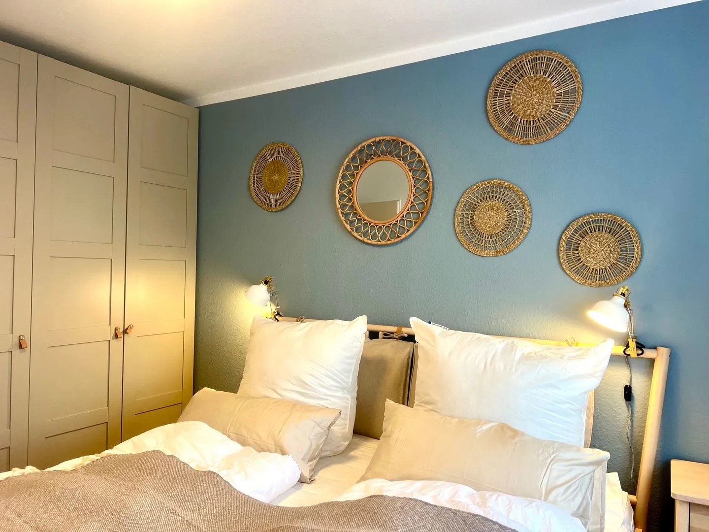 Das Schlafzimmer mit Doppelbett verspricht erholsame Nächte nach einem Tag voller Strandspaziergänge oder Ausflüge in die Umgebung. Vom Südwest-Balkon aus genießen Sie sonnige Stunden, während die frische Meeresluft die perfekte Begleitung ist.