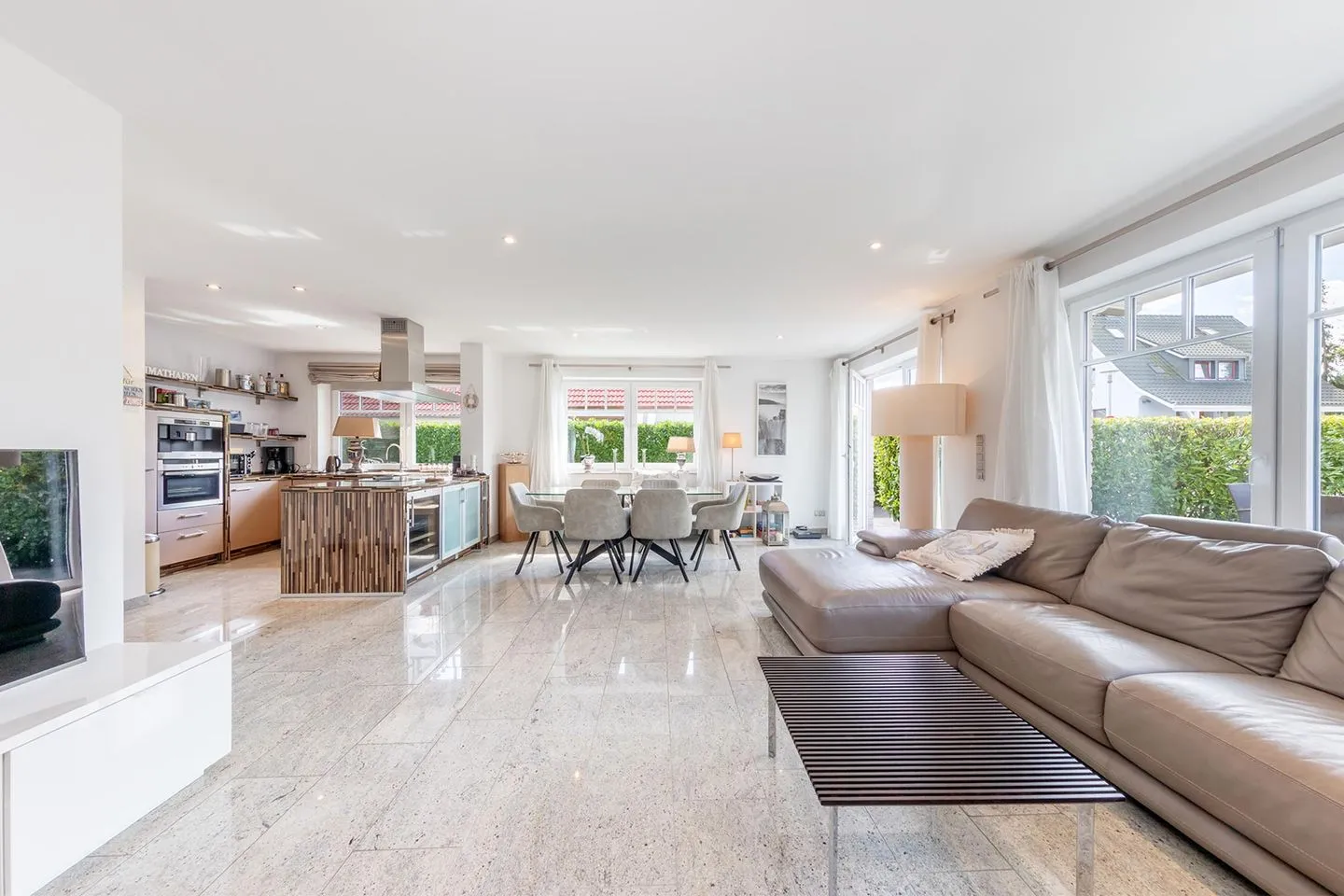 Dank der vielen bodentiefen Fenster wirkt die Wohnung offen, freundlich und warm. Der große Wohn- und Essbereich mit offener Küche lädt zum Zusammensein ein – ob beim gemeinsamen Kochen, Spielen oder einfach beim Abschalten nach einem Tag am Meer. Zwei behagliche Schlafzimmer sorgen für erholsame Nächte, das stilvolle Badezimmer mit Dusche und Badewanne für Wellnessgefühl im Alltag. Praktisch: Ein Hauswirtschaftsraum mit Waschmaschine & Trockneranschluss, ein eigener Garagenstellplatz sowie ein Abstellraum für Strandutensilien.